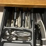 - ❓Bietet das Apartment seinen Gästen eine Küche?Ja, das Apartment ist mit einer kompletten Küche ausgestattet und bietet außerdem einen Wasserkocher, einen Kühlschrank und Küchenutensilien.